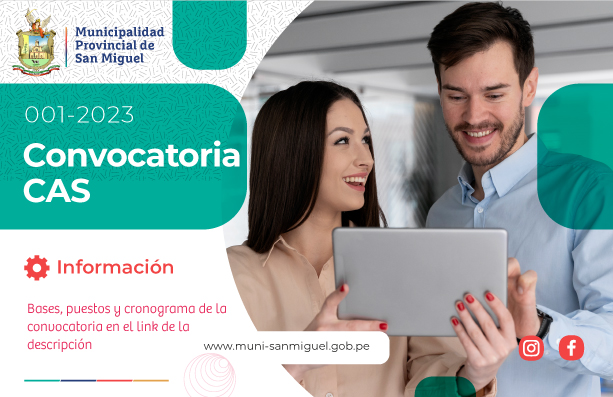 La Municipalidad Provincial de San Miguel, a través de la Subgerencia de Recursos Humanos, lanza Proceso CAS por necesidad transitoria N°001-2023-MPSM - Convocatoria